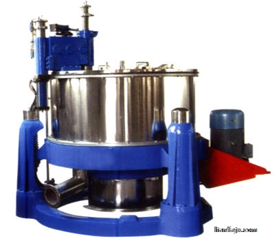 SG 系列離心機是立式手動刮刀下部過濾卸料離心機,待分離的物料經(jīng)進料管進入高速旋轉(zhuǎn)的離心機轉(zhuǎn)鼓內(nèi),在離心機力場的作用下,物料通過濾布(濾網(wǎng))實現(xiàn)過濾,液相經(jīng)出液管排出,固相則截留在轉(zhuǎn)鼓內(nèi),待轉(zhuǎn)鼓內(nèi)濾餅達到機器規(guī)定的裝料量時,停止裝料,對濾餅進行洗滌,同時將洗滌液濾出,達到分離要求后,離心機低速運轉(zhuǎn),操作手動刮刀裝置,通過先徑向刮料,再軸向刮料,將轉(zhuǎn)鼓中的濾餅刮下,刮刀裝置復位,完成一次工作循環(huán)。